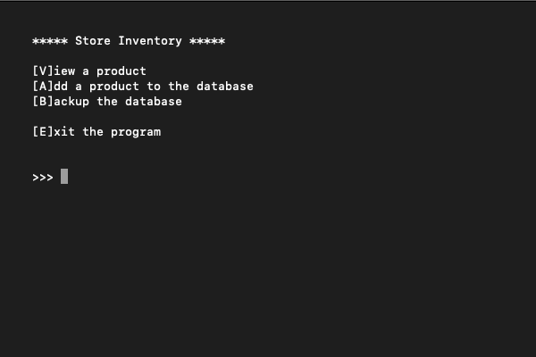 This Python application is a Store Inventory Management System that allows you to view, add, and backup product data in a database. It reads product information from a CSV file and stores it in an SQLite database. You can perform various operations on the products using a command-line menu interface.